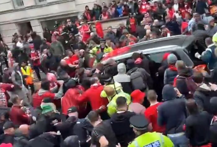 L'episodio è avvenuto dopo le 18 locali, le 19 in Italia, mentre un folla di gente si accalcava nel centro di Liverpool, per celebrare il trionfo dei 'reds', attesi in parata...