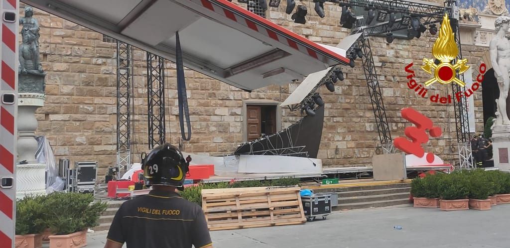 Firenze: crolla palco in Piazza Signoria, ferito un 74enne, incodice giallo all’ospedale