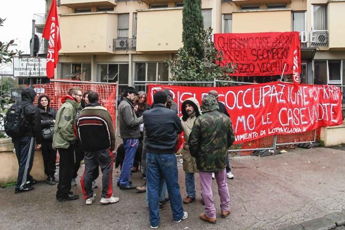 Una quarantina di militanti del Movimento di lotta per la casa ha occupato simbolicamente questa mattina le scale che portano agli uffici nel Palagio di parte guelfa