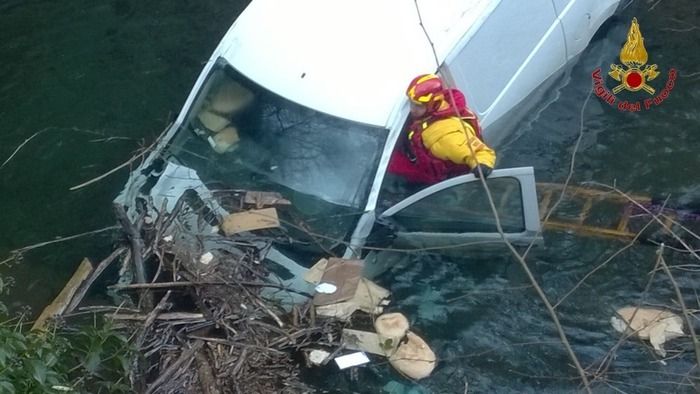 Pistoia, precipita col furgone nel fiume Limentra per scansare un cervo sulla strada