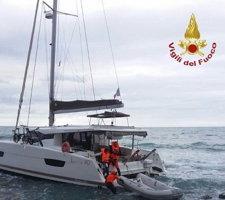 Cecina (Li): 3 francesi in difficoltà su un catamarano incagliato, soccorsi dai vigili del fuoco