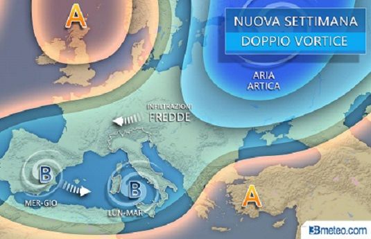 Tra lunedi' e mercoledi' che la bassa pressione entrera' nei nostri mari portando molte nubi ovunque con piogge e rovesci sparsi