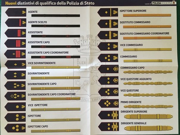 Sono 23 segni distintivi – pubblicati in anteprima sul calendario della Polizia di Stato di quest’anno - svincolati dai gradi adottati in ambito militare