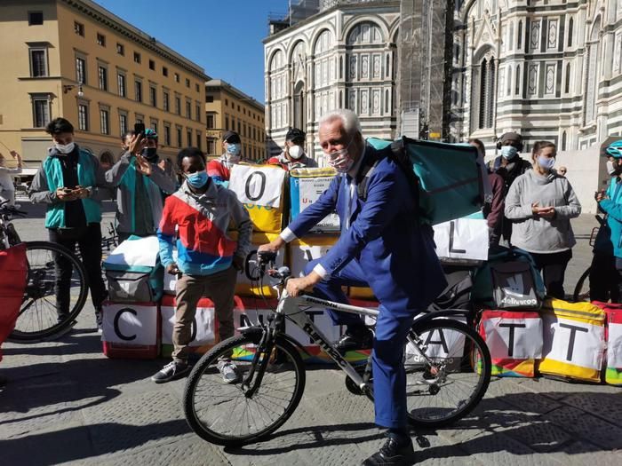 Giani in piazza Duomo solidarizza con i rider che protestano