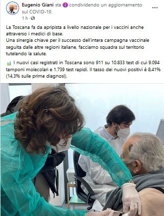 I vaccini Pfzier hanno dimostrato di essere efficaci già dopo la prima dose e stiamo estendendo lo studio anche ad Astrazeneca, afferma Giani
