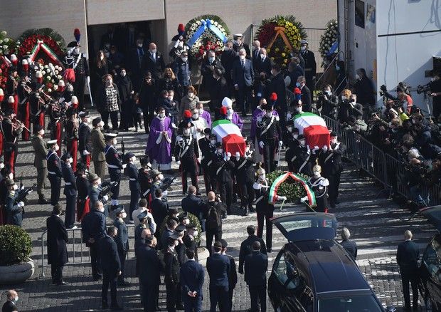 I funerali di Stato per l’ambasciatore Luca Attanasio e per il carabiniere Vittorio Iacovacci, uccisi in Congo (Foto Ansa)