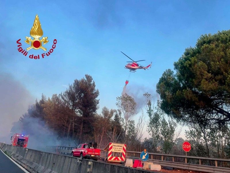 Figline (Fi): incendio nei pressi dell’Autostrada, minaccia case. Intervento dei vigili del fuoco e dell’elicottero regionale