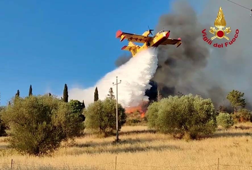 Vasto incendio di bosco e di sterpaglie nel comune di Scansano dove nelle frazioni di Pian D'Orneta e di Baccinello sono in corso evacuazioni dalle abitazioni per circa 180 persone