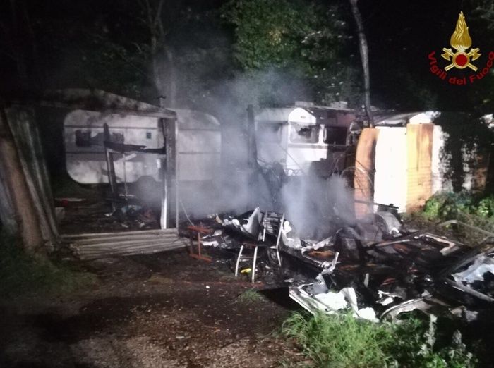Le fiamme, la scorsa notte, hanno divorato due baracche e sette roulotte in una zona in prossimità dell'Arno. Sull'episodio indaga la polizia