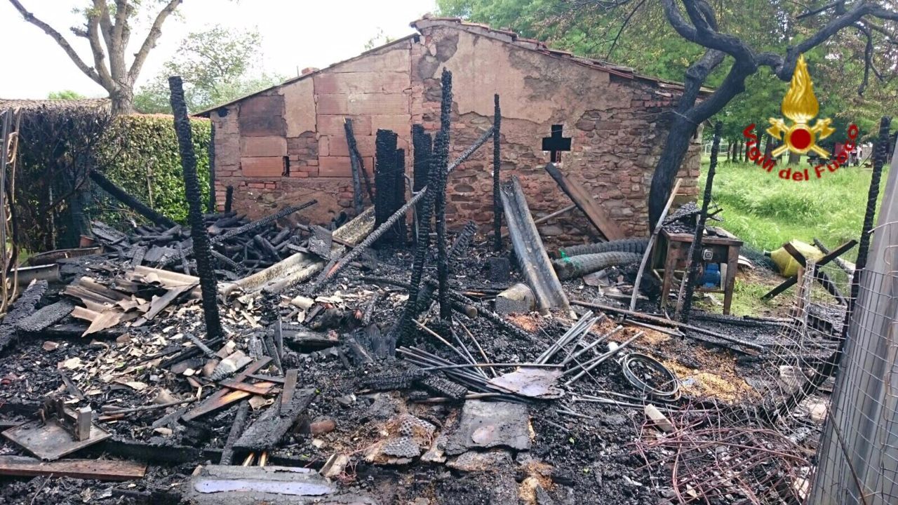 Le fiamme hanno distrutto un capannone della Tab, azienda specializzata nella produzione di cabine da doccia che ha cessato l'attività un anno fa
