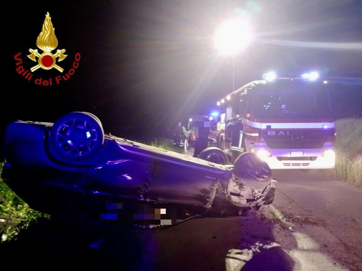Il conducente di un’auto ha perso il controllo della vettura e si è ribaltato sulla sede stradale e il personale dei Vigili del Fuoco ha collaborato con il personale sanitario