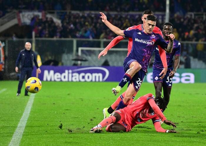 Martinez Quarta nel primo tempo del match al Franchi (Foto Ansa)FIRENZE – Segnano, finalmente, i due centravanti: prima Beltran, poi Nzola su rigore. Ma è solo pari...
