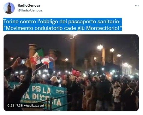 Torino: No green pass scherniscono Lamorgese, «Movimento ondulatorio cade giù Montecitorio» (video)