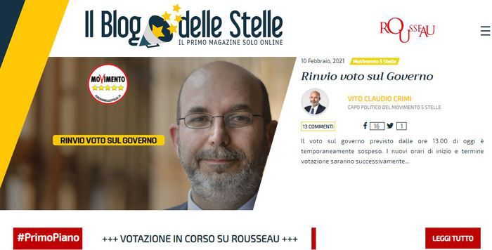 Intanto sulla piattaforma Rousseau la base 5 Stelle dà il via libera alle modifiche statuarie che eliminano la figura del capo politico