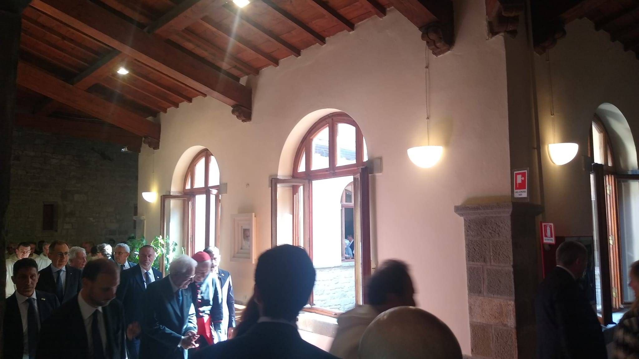Mattarella al monastero di Camaldoli: per gli 80 anni del “Codice”. In dono un tricolore in panno del Casentino