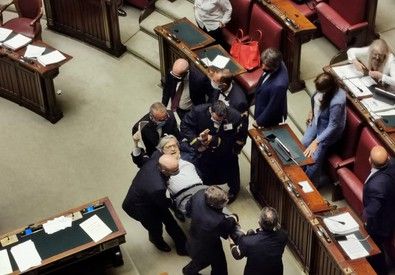 La presidente di turno, Mara Carfagna, l'ha espulso e fatto portar fuori a braccia dai commessi. «Non può offendere i suoi colleghi, non può pronunciare parolacce», ha detto la...