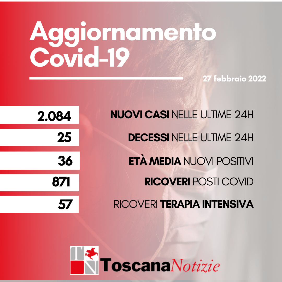 - Nessun commento su Covid Toscana: 25 morti (età media di 82,3 anni), oggi 27 febbraio, 2.084 nuovi casi, 57 terapie intensive