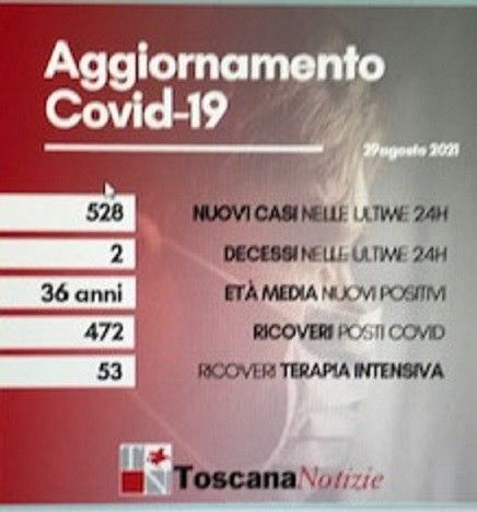 Coronavirus in Toscana: due uomini morti (età media 90,5 anni), oggi 29 agosto. E 528 nuovi contagiati