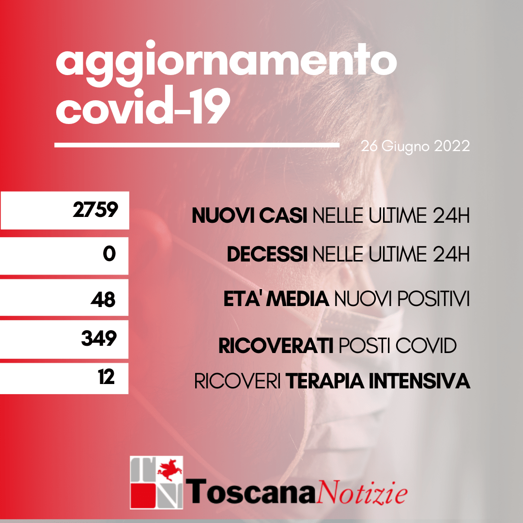- Nessun commento su Covid Toscana: Zero decessi, oggi 26 giugno, 2.759 nuovi contagi, 12 terapie intensive