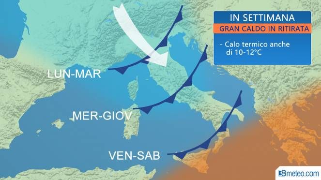 Un'intensa perturbazione atlantica in arrivo, con le fresche correnti, scivolerà lungo la Penisola e da venerdì metterà fine al caldo torrido al Centro e al Sud: il termometro...