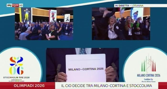 L'Assemblea del Comitato olimpico internazionale riunita a Losanna, ha preferito la candidatura italiana a quella svedese di Stoccolma-Are