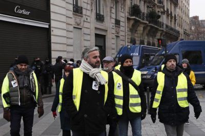 Con gli ecologisti, ad occupare boutique e ristoranti - 130 in tutto - diversi gilet gialli, fra i quali è riconoscibile uno dei leader del movimento, Jerome Rodrigues