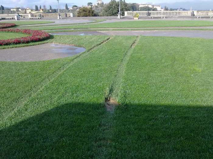 Qualcuno a bordo di un veicolo è transitato sull'erba rovinandola. E non è la prima volta: con le stesse modalità il prato del Giglio era già stato danneggiato in due occasioni...
