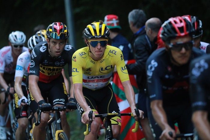 Pogacar ha battuto di nuovo negli ultimi metri di salita il danese Jonas Vingegaard e il colombiano Richard Carapaz, rispettivamente secondo e terzo nella classifica generale