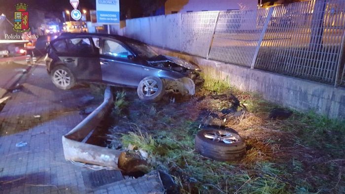 Durante la fuga poi, affrontando una curva, perse il controllo dell'auto, cappottandosi e finendo contro un muro travolgendo due passanti