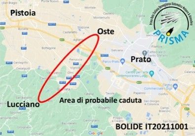 Meteorite caduto fra Pistoia e Prato: lo rivela Prisma