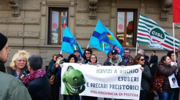 Manifestazione di protesta in piazza Adua, dove è atteso il titolare del Lavoro. I precari chiedono che il Governo, nel riordinare le Province, garantisca il futuro a chi opera...
