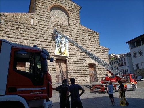 Festa di San Lorenzo: l’effigie del Santo sulla facciata della Basilica, ci pensano i vigili del fuoco