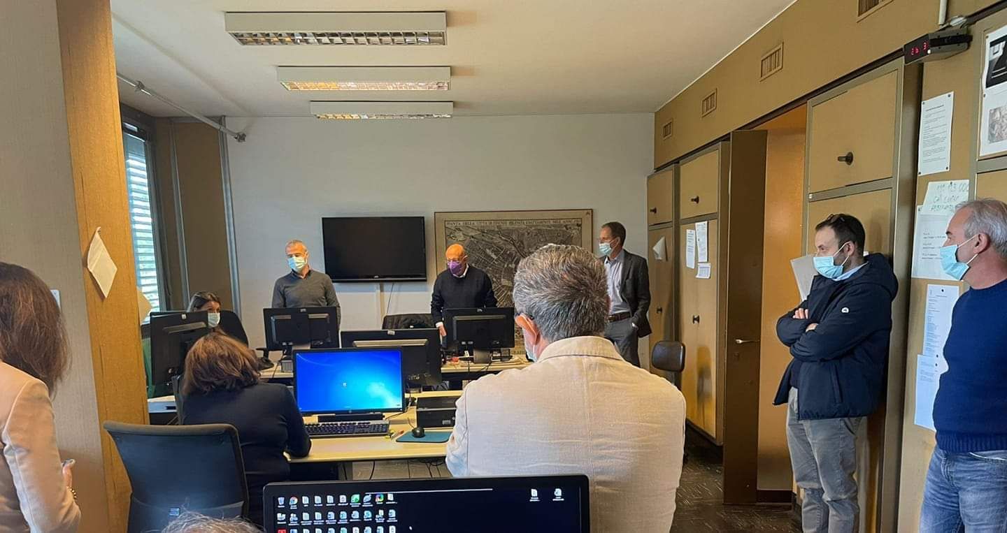 La visita di Vittorio Di Trapani (Usigrai), Sandro Bennucci (Assostampa Toscana) e Carlo Bartoli (Odg Toscana) nella sede Rai di Firenze dopo la lettera minacciosa col...