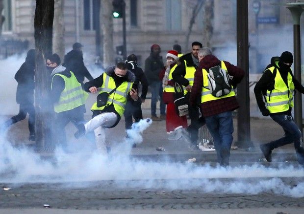 Parigi: gilet gialli manifestano, cariche della polizia, già diversi feriti. Controlli alla frontiera con l’Italia