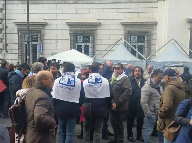 Il sit-in è stato organizzato unitariamente dai sindacati di categoria di Cgil, Cisl e Uil che attendono risposte certe dal governo