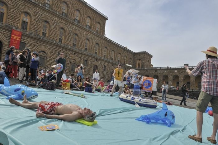 Firenze: creano una spiaggia a Palazzo Pitti per protesta contro le trivelle