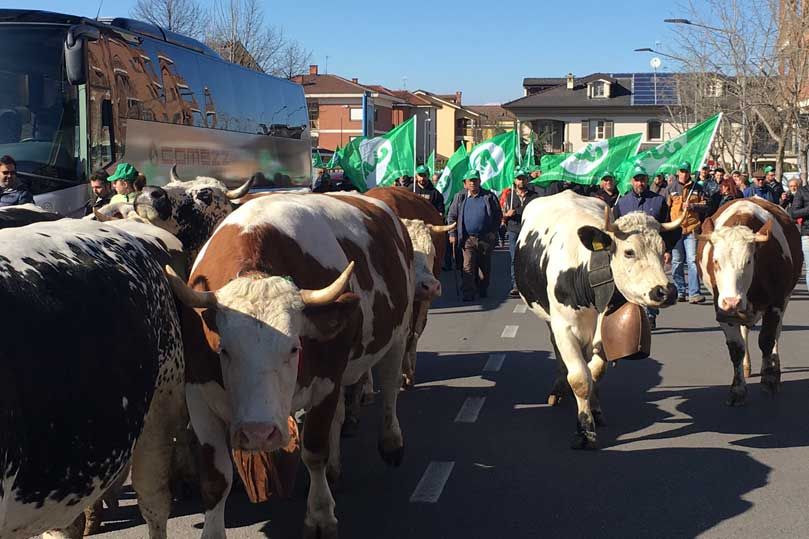 Agricoltura,Carmagnola: la marcia delle vacche (e di mille allevatori) per chiedere politiche di sostegno al latte