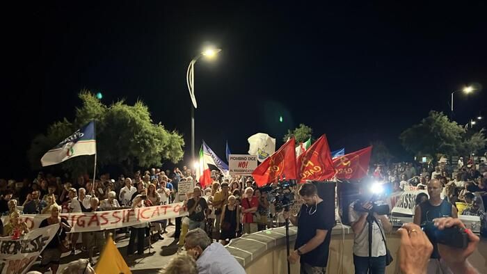 La manifestazione contro l'installazione del rigassificatore decisa dal governo