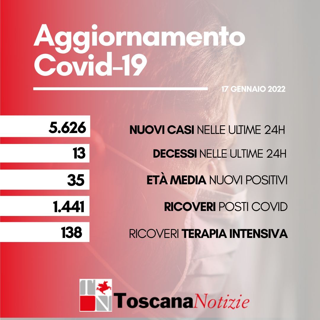 - Nessun commento su Covid in Toscana: 13 morti (età media 72 anni), oggi 17 gennaio. E 5.626 contagi