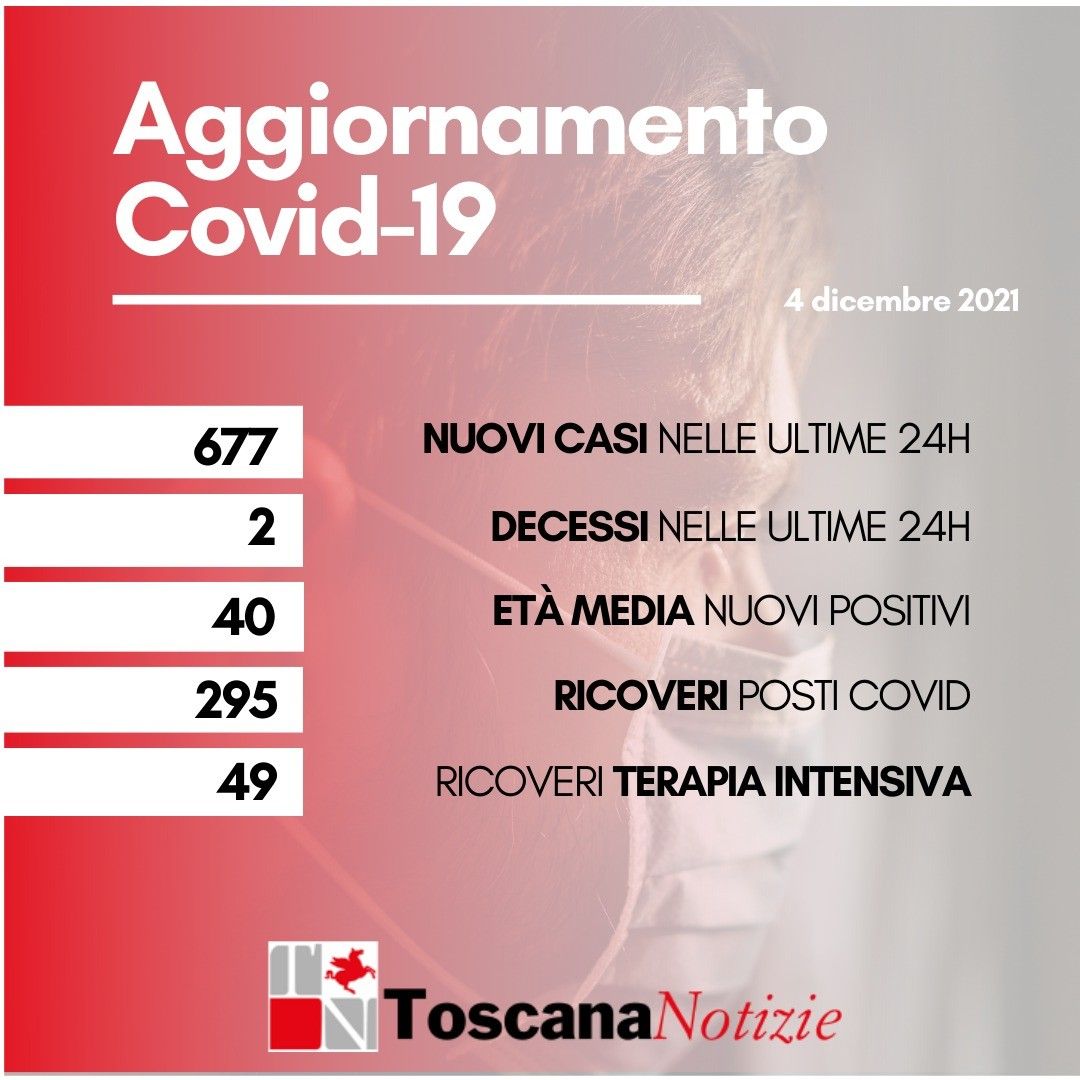 Sono 4 i morti per coronavirus, in Toscana, oggi 9 dicembre 2021. Si tratta di tre donne e un uomo con età media di 85 anni. Risiedevano a Firenze (2), Pisa e Livorno. Mentre...