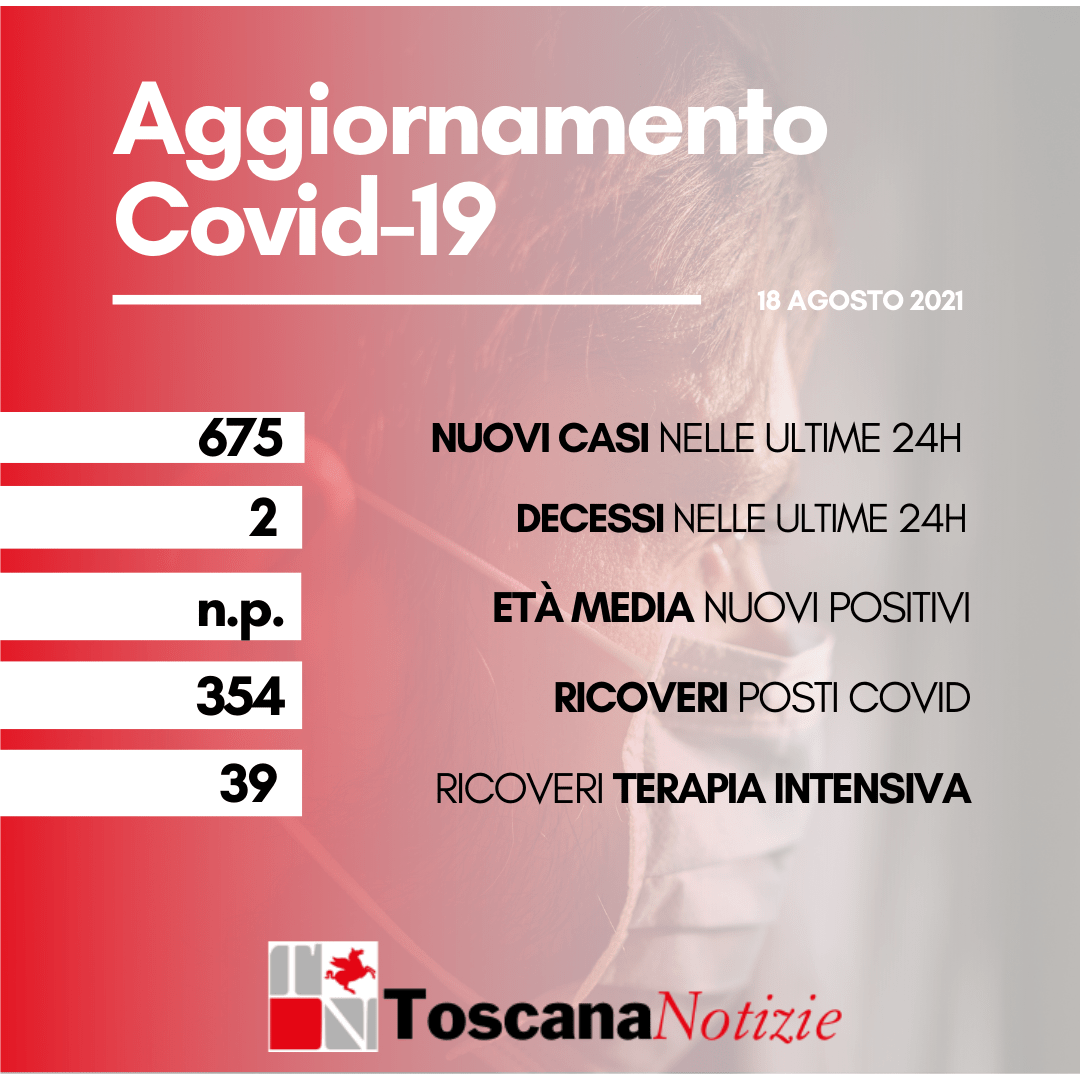 Coronavirus in Toscana: 2 morti (1 donna e 1 uomo, età media 79,5 anni) oggi 18 agosto. E 675 nuovi contagi