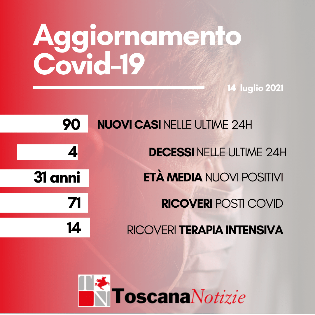 Sono 4 i morti per coronavirus di oggi, 14 luglio 2021, in Toscana: si tratta di 2 uomini e 2 donne copn età media di 74 anni. Tre di loro risiedevano a Firenze e uno a Siena....