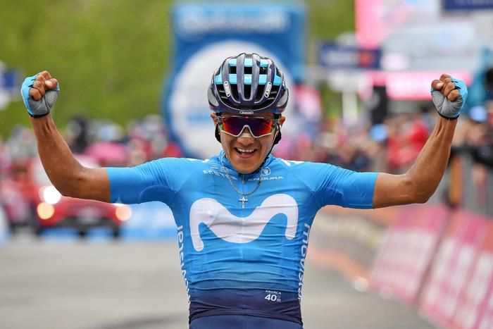 L'ecuadoriano della Movistar ha trionfato a Courmayeur, staccando tutti e presentandosi da solo sul traguardo. In classifica Roglic al secondo posto e Nibali al terzo