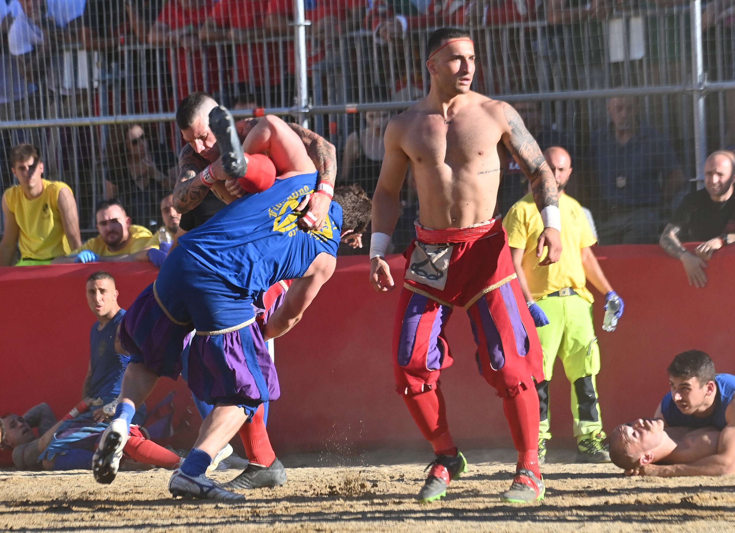 Calcio storico: Rossi in finale contro gli Azzurri. Battuti i Verdi (5 cacce a 1), che si sono difesi con onore nonostante i troppi debuttanti