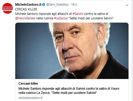- Nessun commento su Santoro contro Salvini: Cerco killer per uccidere il ministro. A difesa di Vauro