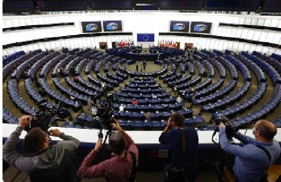 La ripresa dell'attività del Parlamento europeo a Strasburgo svela la visione dell'emisfero, dell'aula della Plenaria, praticamente vuoto ad inizio della sessione