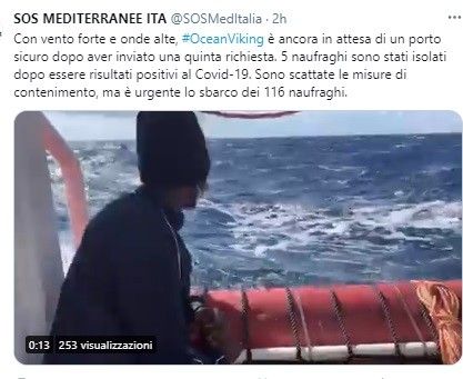 L'Ong Sos Mediterranée insiste nel chiedere un porto sicuro di sbarco per i 116 naufraghi a bordo dell'Ocean Viking