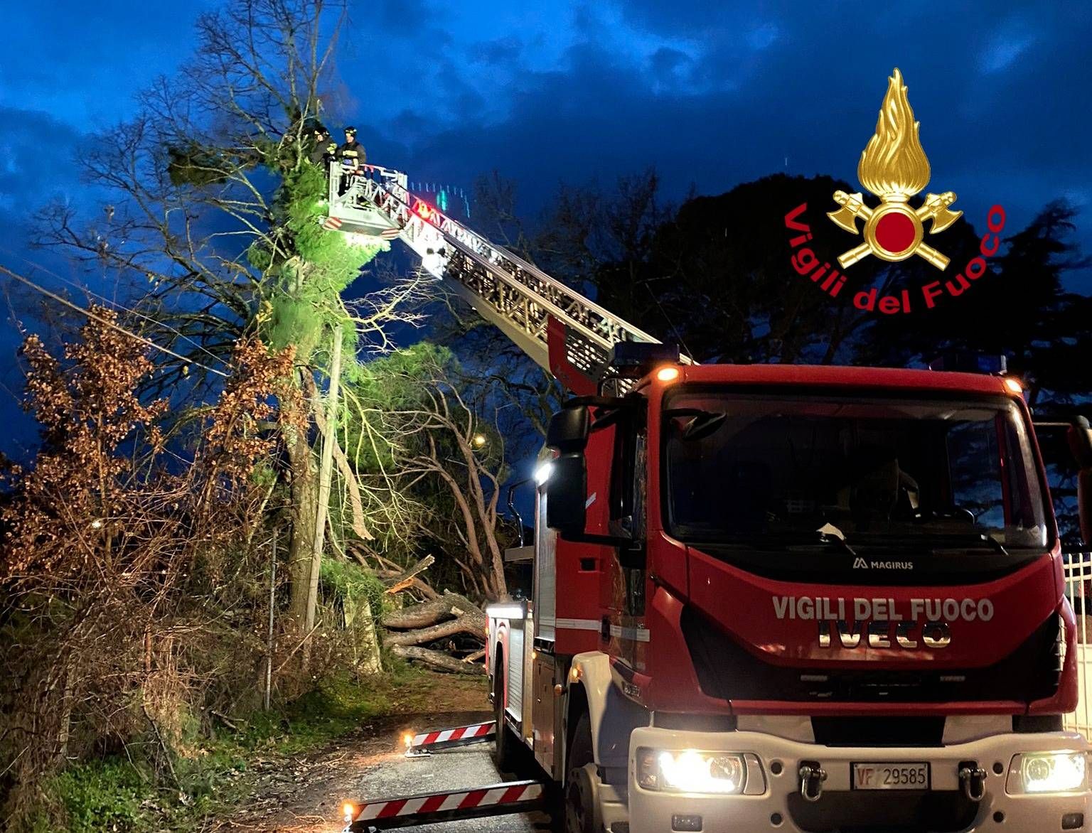 I Vigili del fuoco hanno utilizzato un mezzo aereo e l’autogru per la rimozione dell'albero