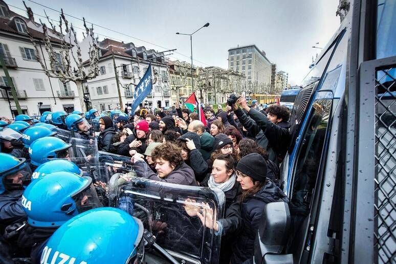Torino: manifestanti pro Palestina irrompono alla Conferenza con i ministri. Scontri con la polizia. Meloni: “Solidarietà agli agenti”