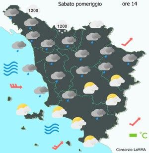 Ecco le previsioni del Lamma per la Toscana nel prossimo weekend, fino a lunedì 29 novembre. Brutto tempo generalizzato, lunedì 29 migliora